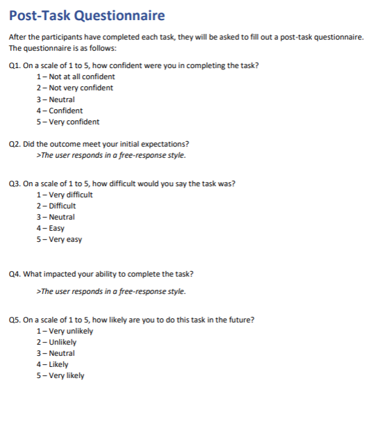 For the post-test questionnaire, participants rated their level of agreement with statements on a scale of 1–5 (Strongly Disagree to Strongly Agree).