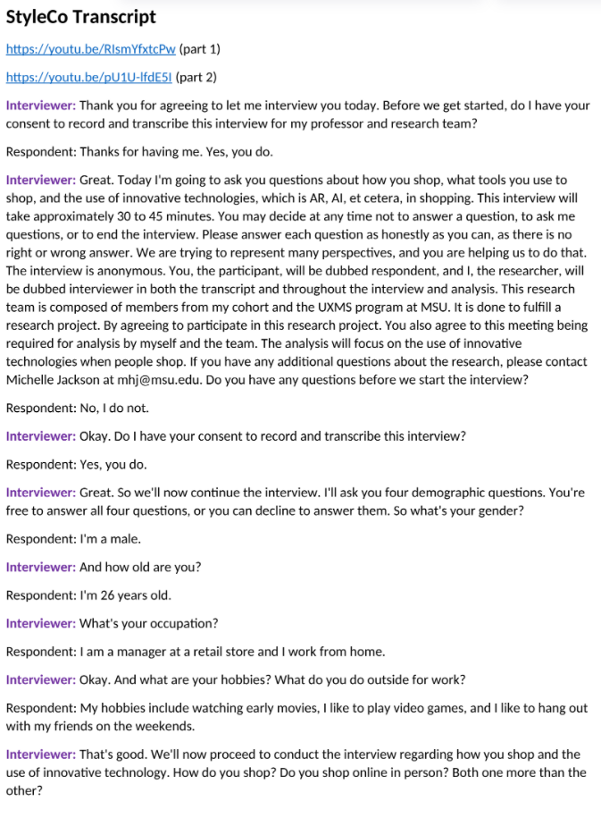 StyleCo is an established international fashion company with a portfolio of well-known clothing brands. Historically the company has relied on physical stores in shopping malls for most of its sales (its first North American mall store opened in 1980 and was a staple in malls in Europe and South America by the late 1980s). The company wants to expand its online shopping experience with an augmented reality fitting room. StyleCo management believes an AR product will cater to fashion-forward customers seeking a unique and personalized shopping experience. They want to know what features would make the app successful as well as if AR is a viable solution.